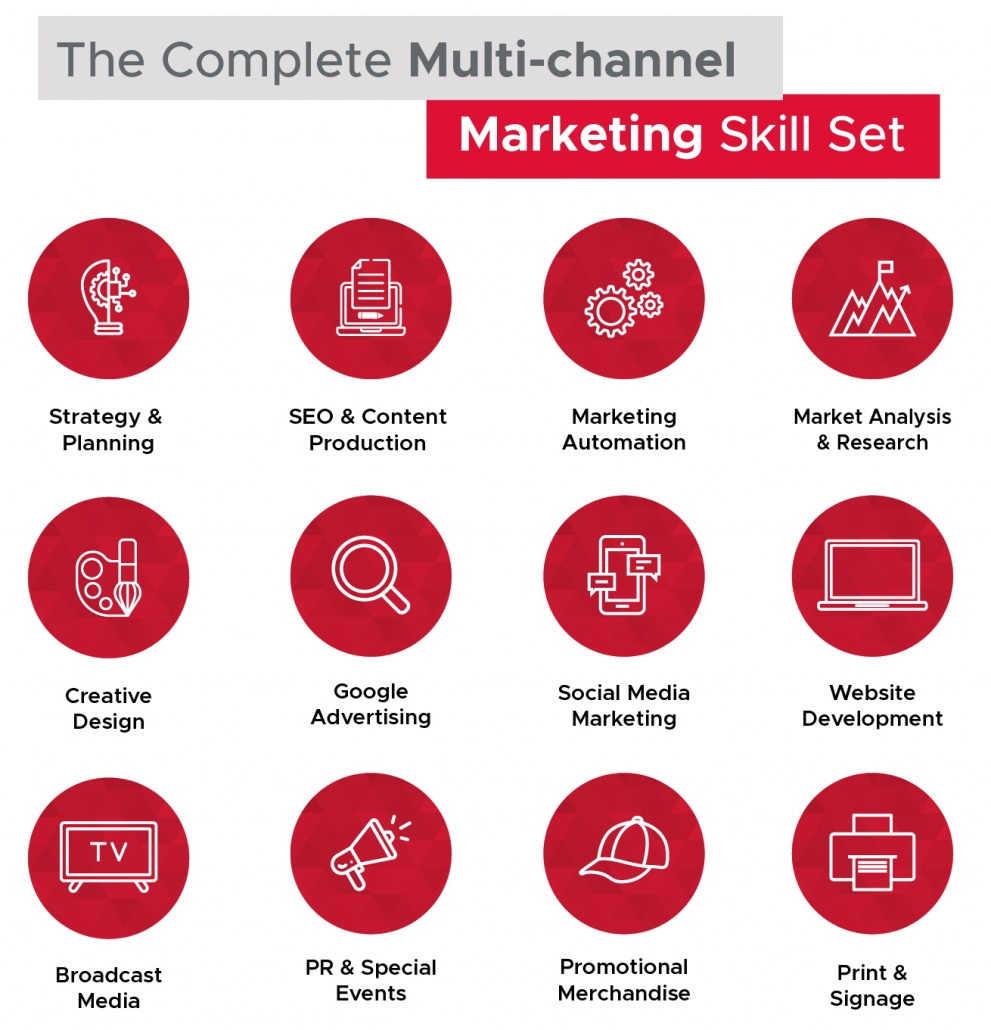 Numerous elements contribute to the development and implementation of a multi-channel marketing strategy. Every business needs a dedicated team that understands every nuance and interdependency of the program. Most businesses will require many, if not all, of these skills: