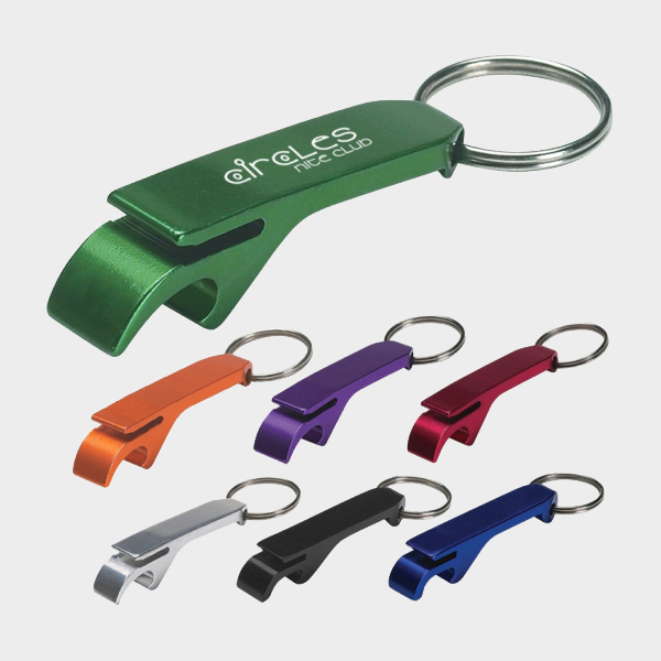 Robust metal branded bottle opener keyring with laser engraved logo. Laser engraves to an oxidised white colour.