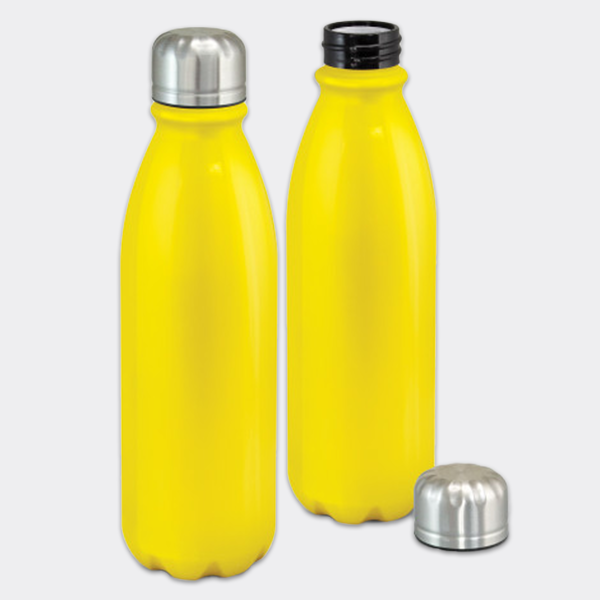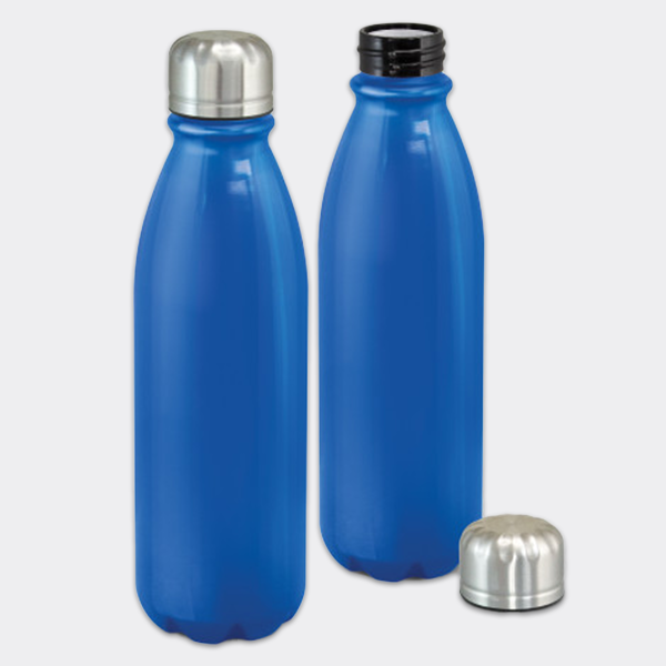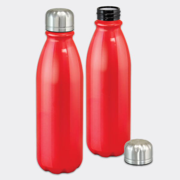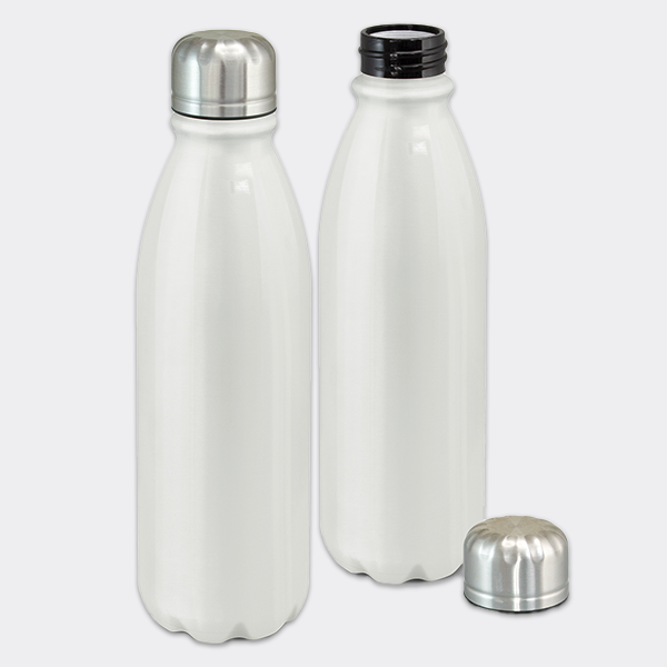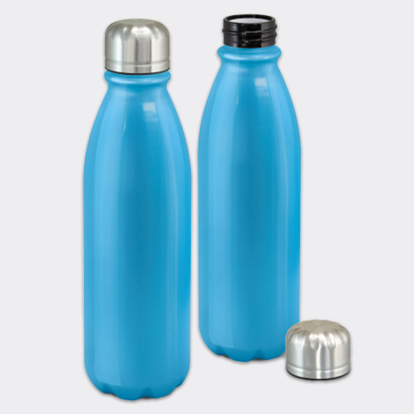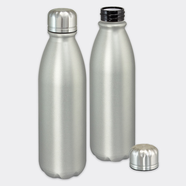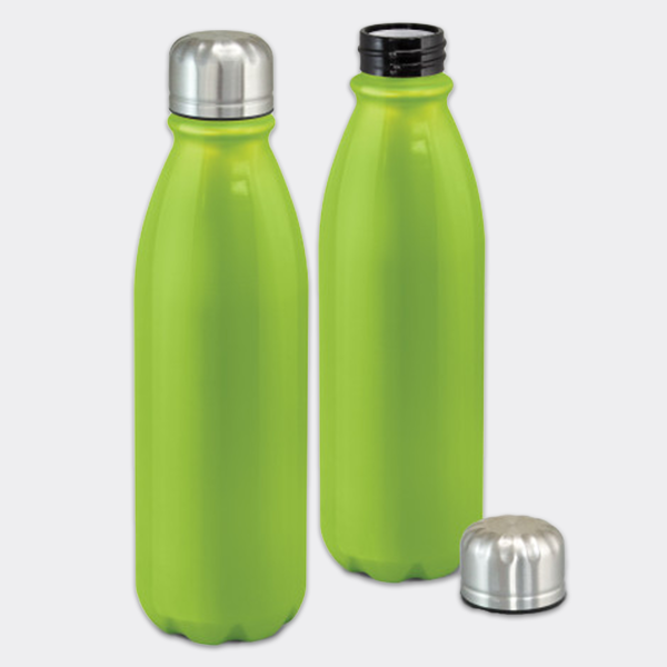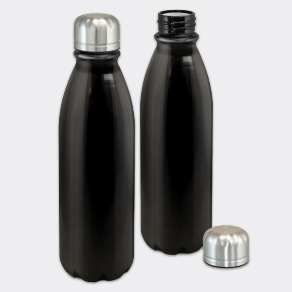 High quality 750ml aluminium water bottle, with a secure stainless steel screw on lid. Includes one colour custom branding.