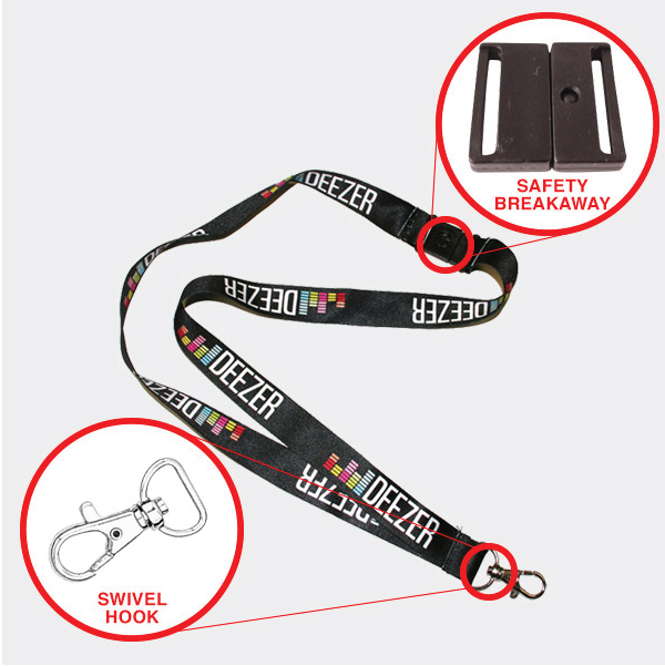 CMYK printed 20mm wide Lanyard. Smooth fabric finish with swivel hook and safety breakaway.