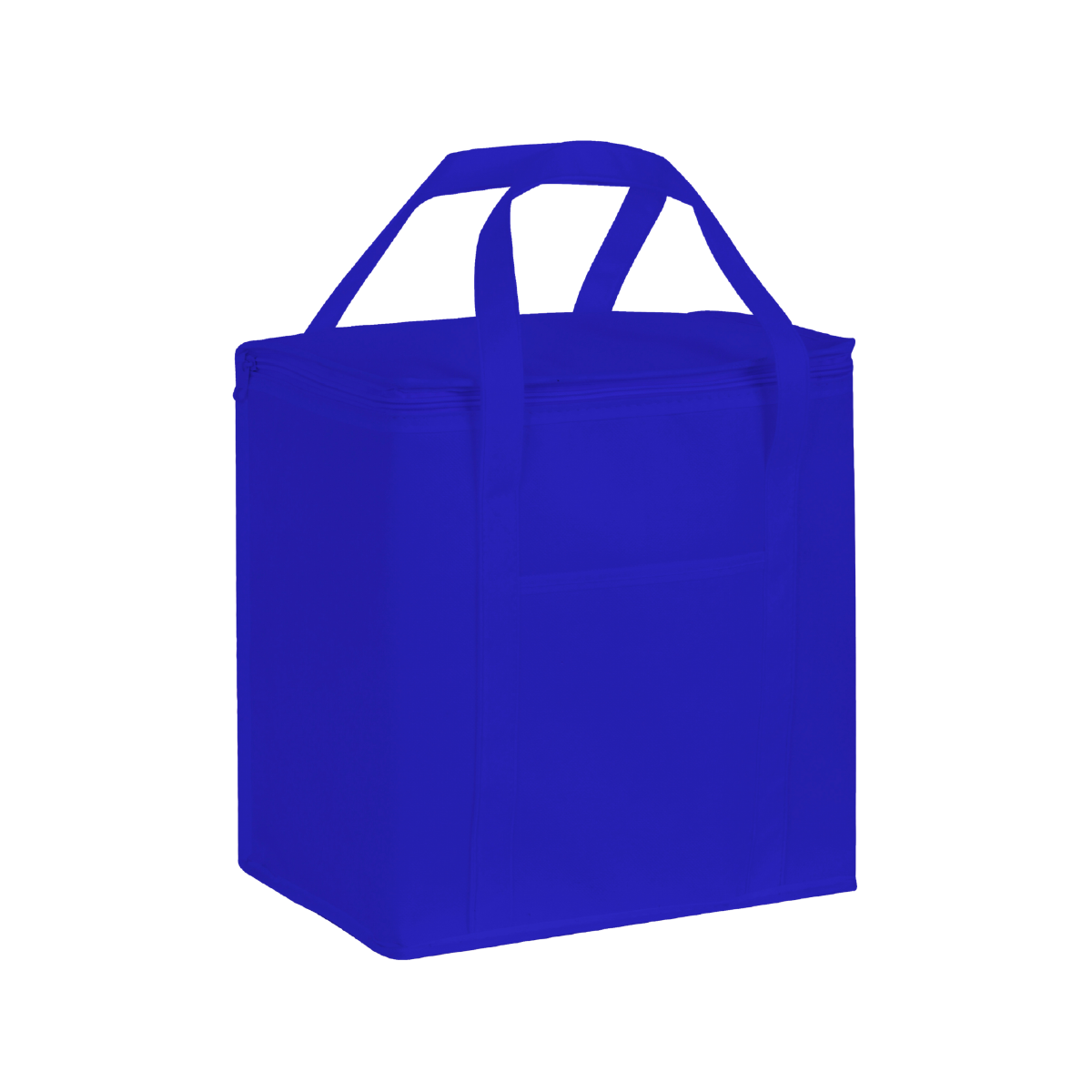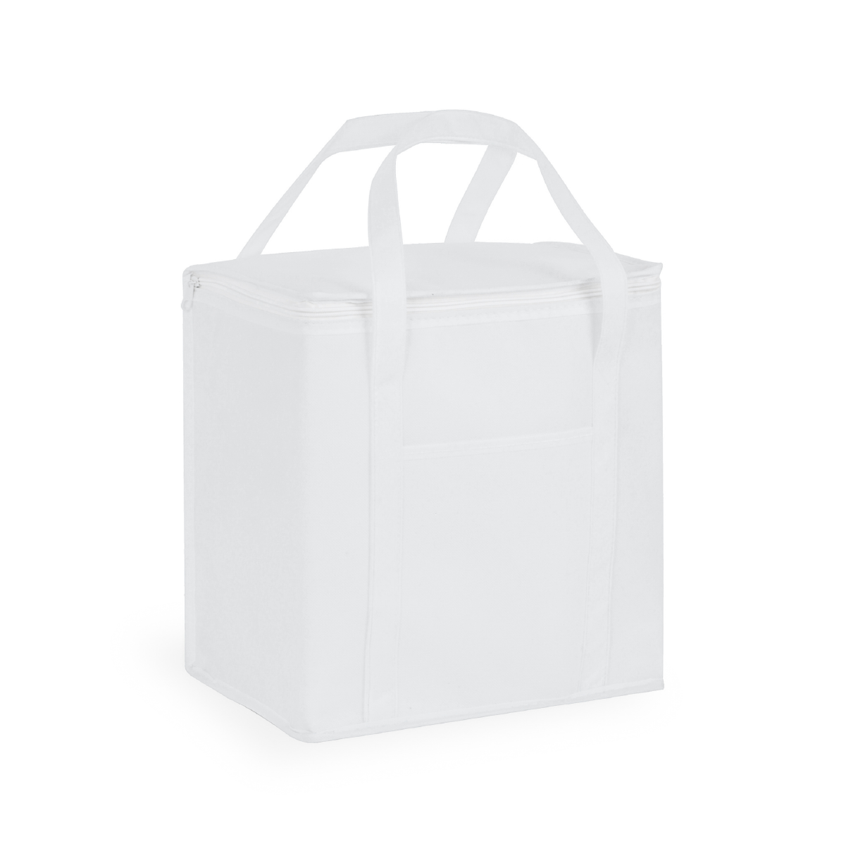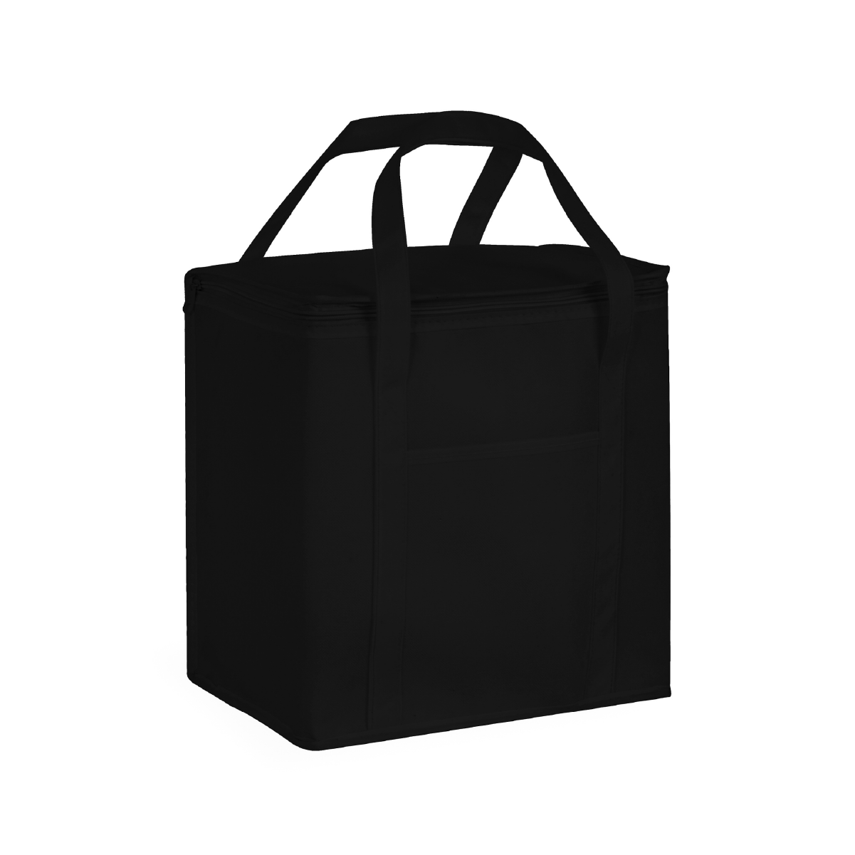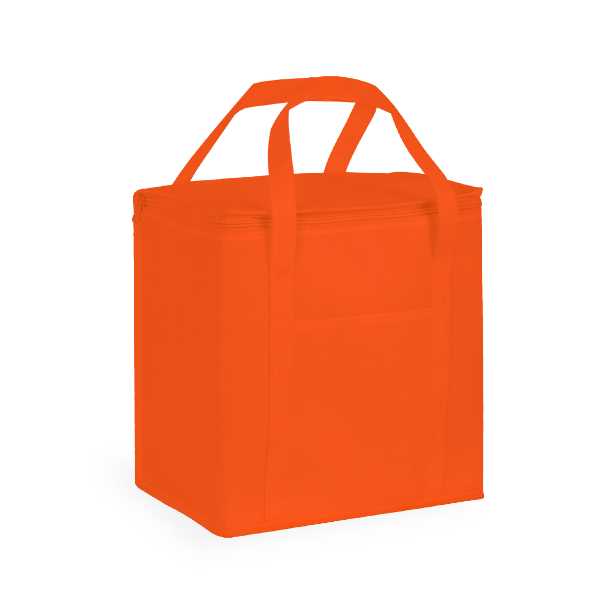 6L Polyester custom printed lunch cooler bag with aluminium foil laminated PE foam insulation. It has a zippered top closure, reinforced woven handles and a large front slip pocket.