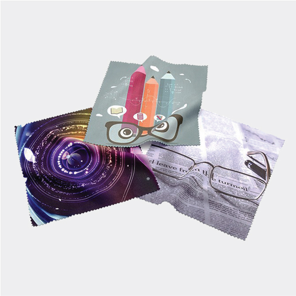 Microfibre Lens Cloth printed full colour on one side, which can also be used to clean screens. Individually polybagged.